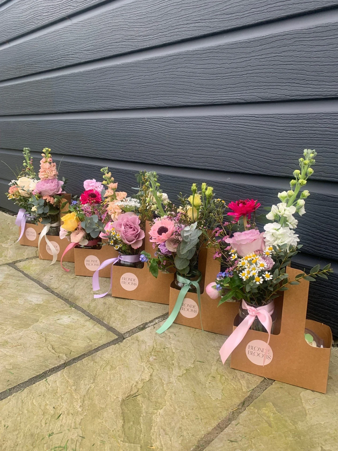 A beautiful posy of flowers in a jar, paired with a stunning, hand crafted biscuit provided by Beth at BK BISCUIT CO. The biscuit will be individually wrapped and sit in the trug along side the floral posy jar.